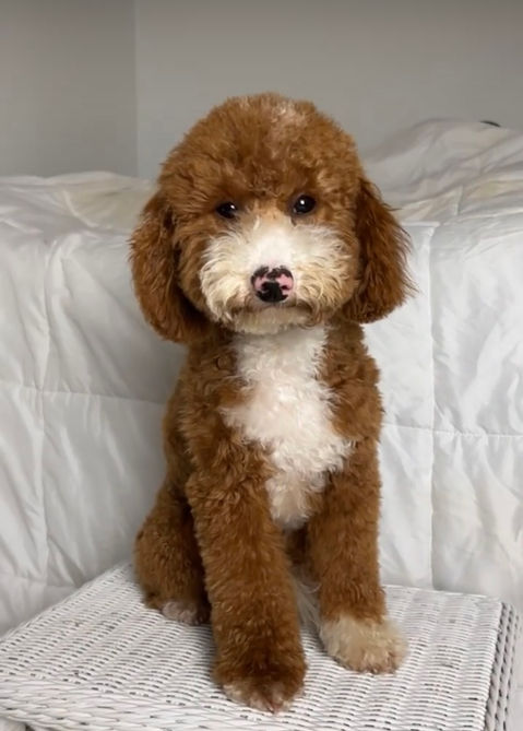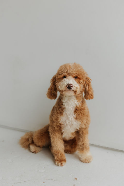 Isabella, also known as Izzy, is a spirited F1B mini goldendoodle weighing 17 pounds. She is very loyal and has a very calm demeanor yet has a strong drive to make her owner happy. Izzy lives in a loving guardian home where she receives continuous affection and attention and chooses to chill on her mommas bed 75% of her life. With her playful nature and charming personality, Izzy brightens up the lives of everyone around her and brings joy to her household.