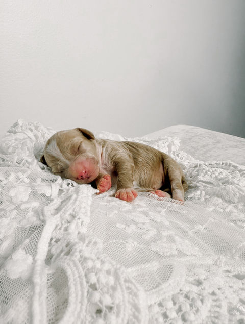 Enid’s budding personality is as cheerful as can be. She’s curious, always exploring with her tiny tail wagging, and loves being part of the action. Whether it’s a gentle cuddle or a new adventure, she’s all in. Enid does wonderfully with kids and already has such a lovable, social nature.